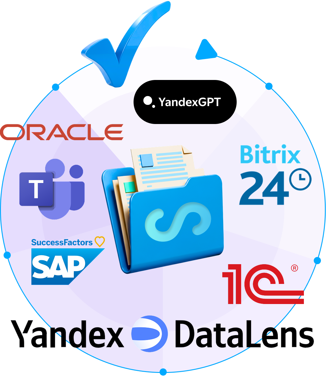 Готовые модули для интеграции с кадровыми системами, календарями, корпоративными порталами, BI и КЭДО