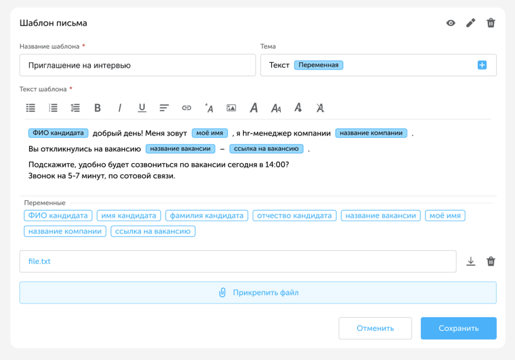 Шаблоны сообщений для быстрой коммуникации с кандидатом