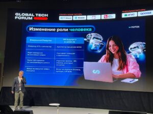 Генеральный директор HRTech-компании «Поток» Сергей Ахметов выступил на GLOBAL TECH FORUM с докладом об изменении процесса найма персонала и работы рекрутеров в эпоху искусственного интеллекта.