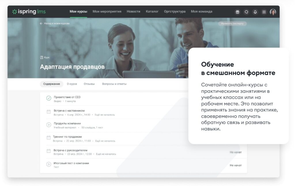 - Мобильное приложение (iOS, Android) и веб-версия — новичок проходит адаптацию в любое время и в любом месте.
