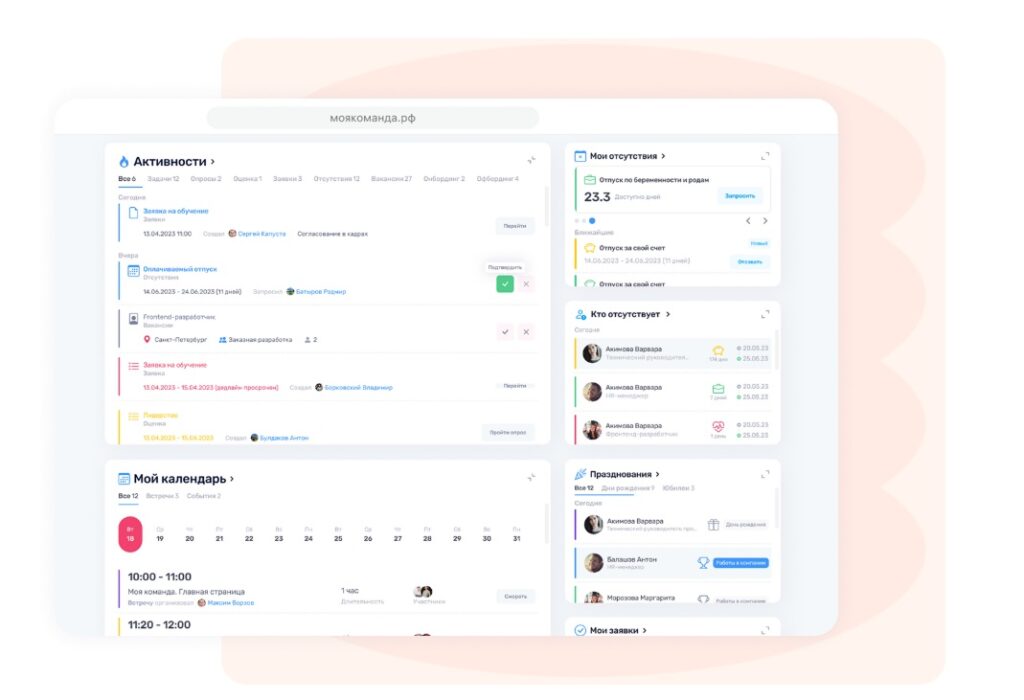 - Интеграция с кадровыми системами, CRM и сервисами видеосвязи через открытый API.