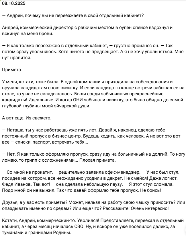О чём канал: Живые истории из HR-практики в стиле художественной прозы, регулярные обзоры рынка труда, авторский взгляд на новости, полезные материалы на все трудовые случаи.