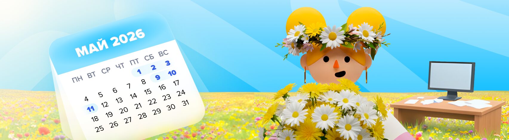 - ✅ В 2026 году выходные дни: 1,2,3 мая, а также 9,10,11 мая (при 5-дневной рабочей неделе).